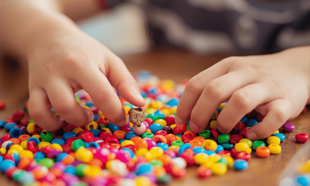 - unika zabaw manualnych – układanie klocków, lepienie plasteliny, nawlekanie koralików,